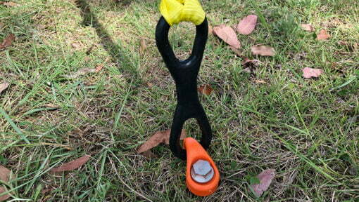 The Hook Collar is specially designed to easily attach the Ground Dog screw in peg to the Safety Spring. It can also be used as a locking nut when the ground is too hard. The Ground Dog screw in peg comes with the Hook Collar included but the Hook Collar can also be brought here individually.  Learn more.